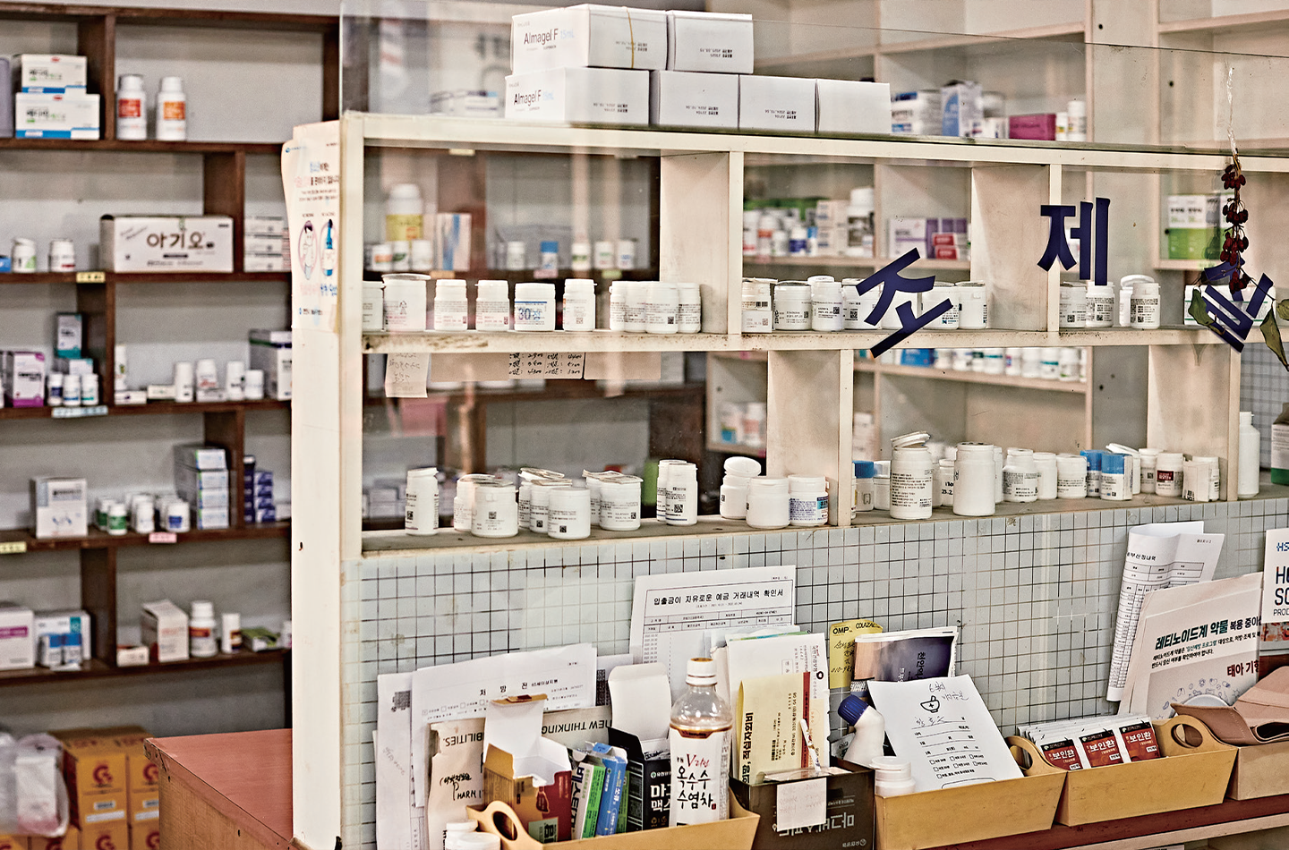 그렇게 밤낮 없던 시절도 지나가고 이젠 여유가 생겼다. 지금은 24시간 문을 여는 편의점이나 매장에서도 약을 살 수 있고, 처방전이 있어야 조제가 가능하니 근처에 병원이 많지 않은 대명약국에서는 소화제나 감기약 같은 일반의약품이나 드링크류가 주요 판매 물품이다.