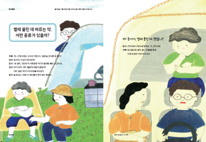 동아동화 코너가 유익했습니다. 여름철이면 벌레에 물린 아이들이 투정을 부리거나 하면서 부모와 신경전을 벌일 때가 있죠. 전문 용어도 쉽게 설명해 대화처럼 편하게 느껴졌습니다. 늘 유익한 정보와 이벤트로 가득한 사보를 제작하시는 관계자 분들께 감사드리며, 응원을 보냅니다!