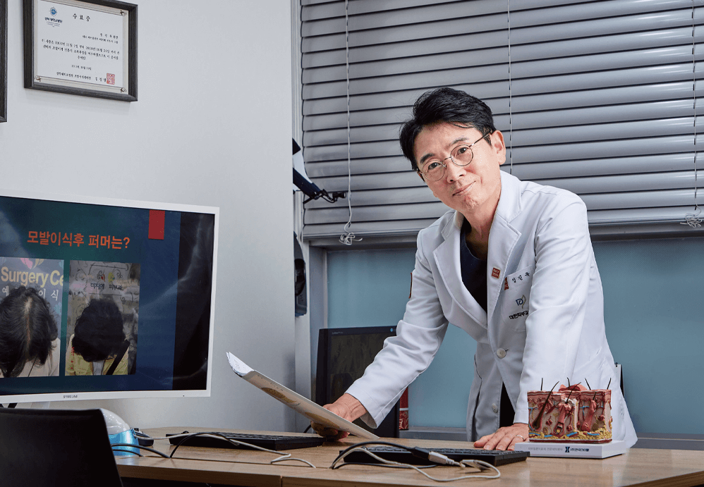 과거 모발 이식은 특별한 계층만 하는 수술로 여겨졌지만, 이제는 누구나 외모 관리를 위해 필요한 치료로 인식하고 있다. 특히 우리나라는 세계적으로 뛰어난 수술 실력과 최신 기술 접목, 환자 중심의 의료 서비스 등을 통해 해외 환자들의 의료 관광도 이어지고 있다. 20년 이상 탈모 치료에 매진해 온 더모헤어플란트 정진욱 원장에게 모발 관리와 탈모 치료 방법에 대해 들어 보았다.