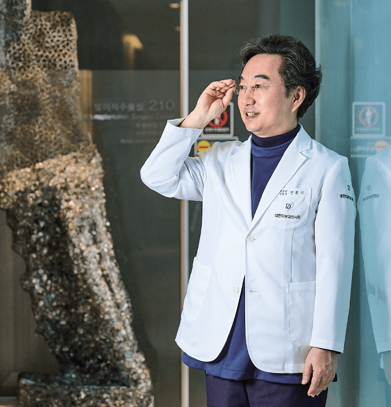 피부과는 내과적, 외과적 요소를 함께 갖추어 연구 논문도 많이 쓸 수 있고 수술도 할 수 있는 환경인 점에 특히 흥미를 느꼈습니다. 군의관 시절에는 피부 질환으로 힘들어하는 장병들을 도와줄 기회가 있었는데, 상태가 호전되자 몹시 기뻐하는 모습을 보며 피부과를 선택하길 잘했다는 생각도 했습니다. 피부 질환은 삶의 질을 떨어뜨리는 큰 요인입니다. 정확한 진단과 올바른 치료로 더 많은 환자들에게 환한 웃음을 돌려 드리고 싶습니다.