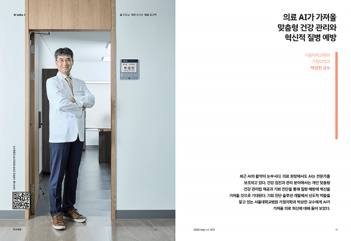 ‘의료 AI가 가져올 맞춤형 건강 관리와 혁신적 질병 예방’이라는 칼럼에 눈이 먼저 갔습니다. 평소 챗GPT를 통해 이런저런 도움을 받고 있고 AI가 아직 본업과 긴밀한 연결은 되어 있지 않지만 머지않아 현장으로 깊숙이 파고들 것 같은 생각이 듭니다. 칼럼에서 언급됐듯 진단에 보조적인 역할을 할 것으로 예상되기도 하지만, 미래 세대에서는 주된 역할을 하지 않을까 하는 생각도 합니다.