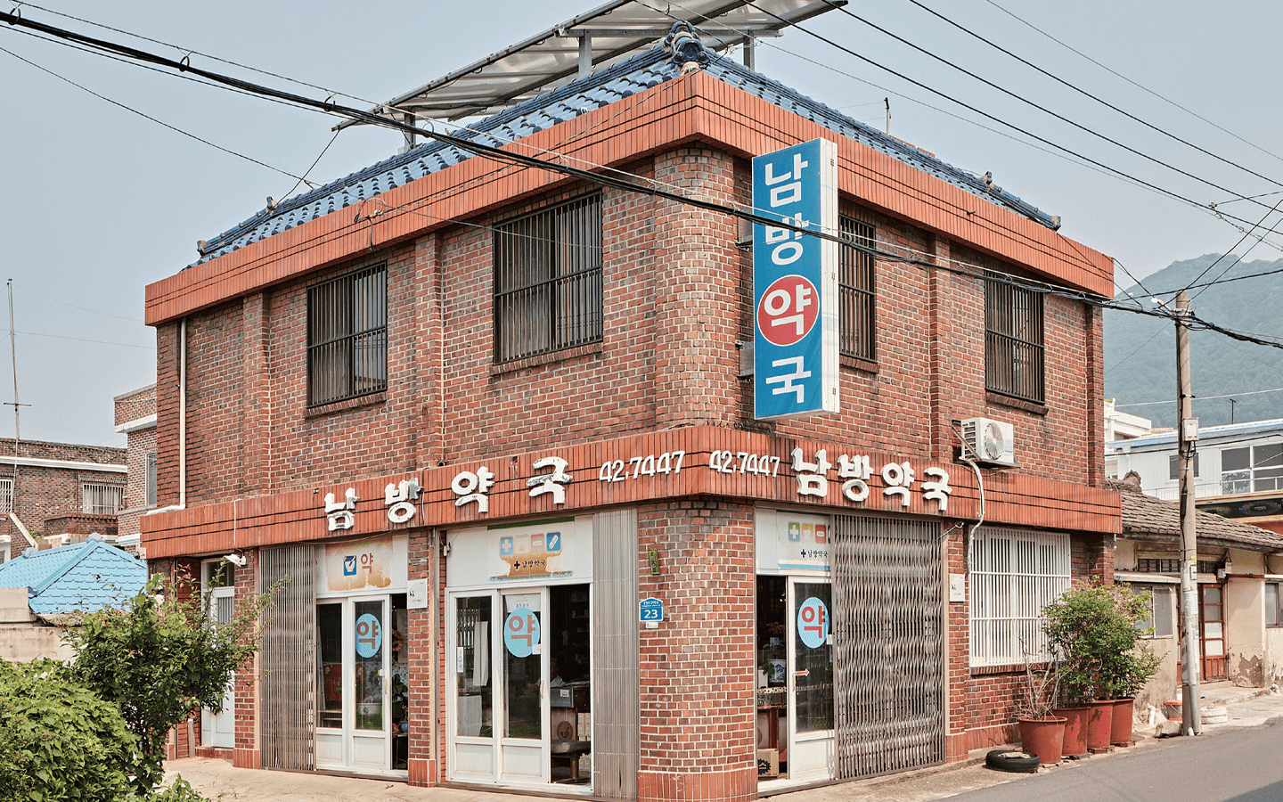 창원시 친해구 충장로 329번길. 재개발이 예정되어 있을 만큼 세월이 느껴지는 동네다. 그 오랜 시간 주민들의 삶의 터전이 되어준 골목길로 들어서면 60년간 한결같은 모습으로 길 한편을 지키고 있는 약국이 있다. 1966년 당시 초가집을 인수해 약국 문을 연 남방약국이다.