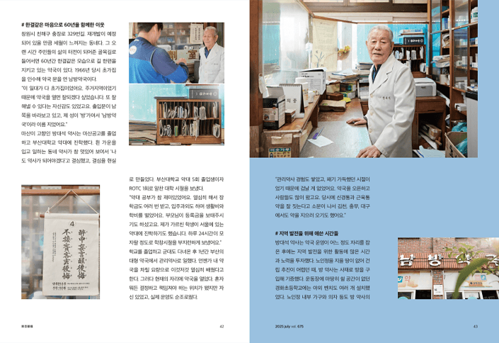 방대석 약사님의 이야기를 접하며 깊은 감동을 받았습니다. 60년 동안 한자리를 지키며 지역 주민들과 함께해오신 건 정말 대단한 일입니다. 방 약사님과 같은 분이 계시기에 경화동이 더욱 따뜻하고 안전한 곳임을 느낍니다. 특히 약국이 단순한 약을 파는 곳이 아니라, 주민들이 마음의 짐을 털어놓고 상담할 수 있는 공간이 됐다는 점이 특별하게 느껴졌습니다. 아픈 사람들에게 언제든지 찾아올 수 있는 안식처가 되어주신 방 약사님께 진심으로 감사의 말씀을 전하고 싶습니다.