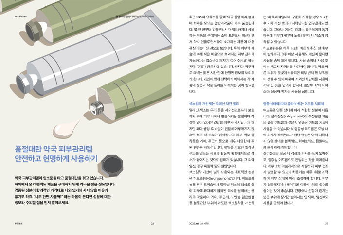 약국 피부관리템에 대한 칼럼을 특히 집중해서 읽었습니다. SNS를 통해 유명해진 꿀템들을 오용하기도 쉽고, 의약품 자체가 유독성이라고 오해하는 경우도 많은데 이렇게 구체적으로 다뤄주셔서 고맙습니다.
