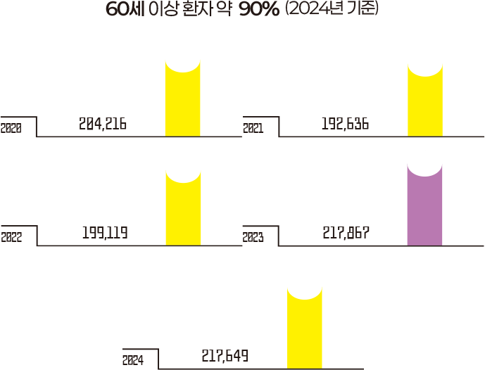 최근 국내 호흡기질환 유병률은 꾸준히 증가하는 추세다. 특히 만성 폐쇄성 폐질환(COPD)과 천식 등 만성 호흡기질환의 유병률이 높다. 인구 고령화와 환경 변화로 인해 호흡기질환자 수가 지속적으로 늘어나면서 조기 진단 및 관리의 중요성이 더욱 강조되고 있다. 질환별 환자 수 변화 추이를 살펴보자.