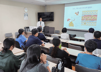 매주 목요일마다 환자와 보호자, 직원을 위한 간질환 교육 프로그램을 진행하고 있습니다. 인터넷, 유튜브 등을 통해 다양한 정보를 취득하는 만큼 올바른 의료 정보전달이 더욱 중요한 때입니다. 강의는 작년 초부터 시작하여 50회 정도 진행했습니다. 첫째 주는 간질환 전반, 둘째 주는 췌장 및 담도질환, 셋째 주는 간 수술, 넷째 주는 간암 관련 강의로 구성되어 있습니다.
