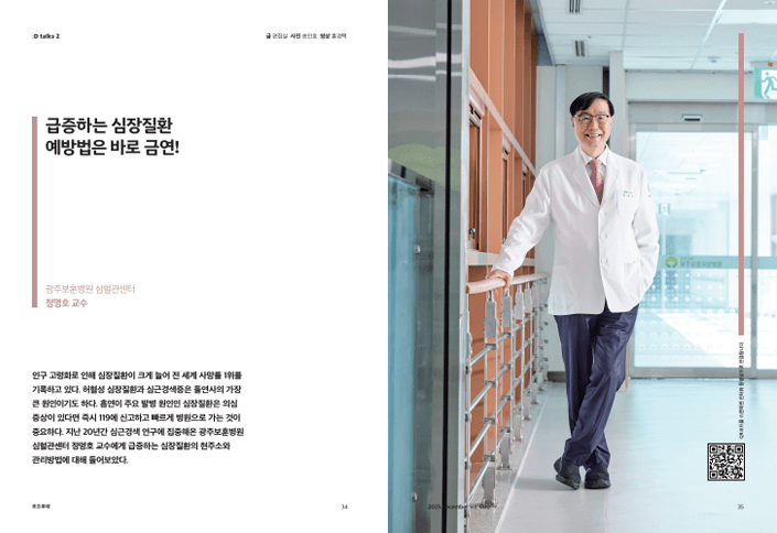 정명호 교수님의 심장질환에 대한 칼럼을 인상 깊게 읽었습니다. 최근 날씨가 추워서인지 심근경색 위험도가 높아졌는데, 구체적 설명과 일상생활 속에서 관리법도 알려주셔서 환자들에게 많은 도움이 될 것 같아요. 교수님의 따뜻하고 꼼꼼한 마음 씀이 글로도 잘 느껴졌습니다.