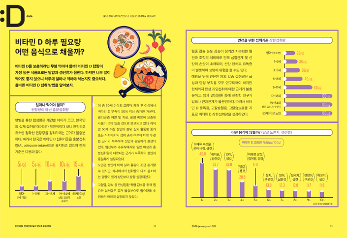 2026년 새롭게 개편된 동아약보, 너무 재밌게 읽었습니다. 현대인의 필수 영양소라는 주제로 비타민 D를 심층적으로 다룬 구성도 좋았습니다. 비타민 D라고 하면 막연하게 햇빛을 통해 제공받는 비타민으로만 생각했는데, 알기 쉽고 흥미로운 내용으로 비타민 D를 소개해주어 일상생활에 많은 도움이 될 것 같습니다. 앞으로도 유익한 내용의 동아약보, 기대하겠습니다!