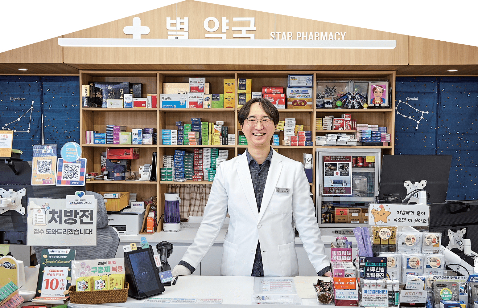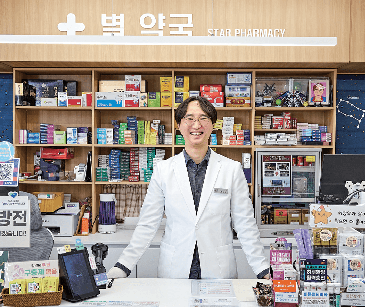 “지금의 별약국 자리를 선택한 이유 역시 감이 아닌 현실적인 판단에서 출발했습니다. 주변에 병원이 밀집해 있고, 직장인 유동 인구가 많아 안정적인 상권이라는 점이 가장 컸어요. 함께 출근하고 함께 퇴근하는 생활 리듬, 비교적 예측 가능한 근무 강도는 장기적인 운영을 생각할 때 중요한 기준이었죠.”