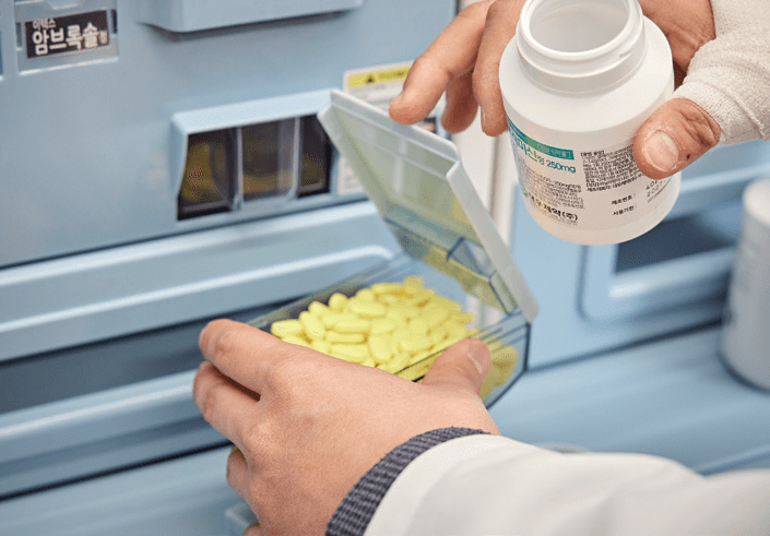 조제실도 그동안 근무하며 느꼈던 불편함을 기준으로 삼아 설계했다. 조제실과 투약 공간의 이동성을 높이기 위해 양방향 통로를 만들고, 내부의 개방감을 살리는 데 집중했다. 장비는 익숙함을 기준으로 선택했다. 조제기는 JVM, 전산 프로그램은 이전 근무 경험과 조언을 반영해 PM+20으로 결정했다.